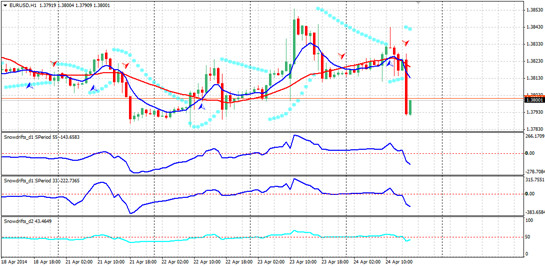 - 2.Индикаторы Snowdrifts_d1 c разными периодами пробивают сверху вниз уровень 50.
